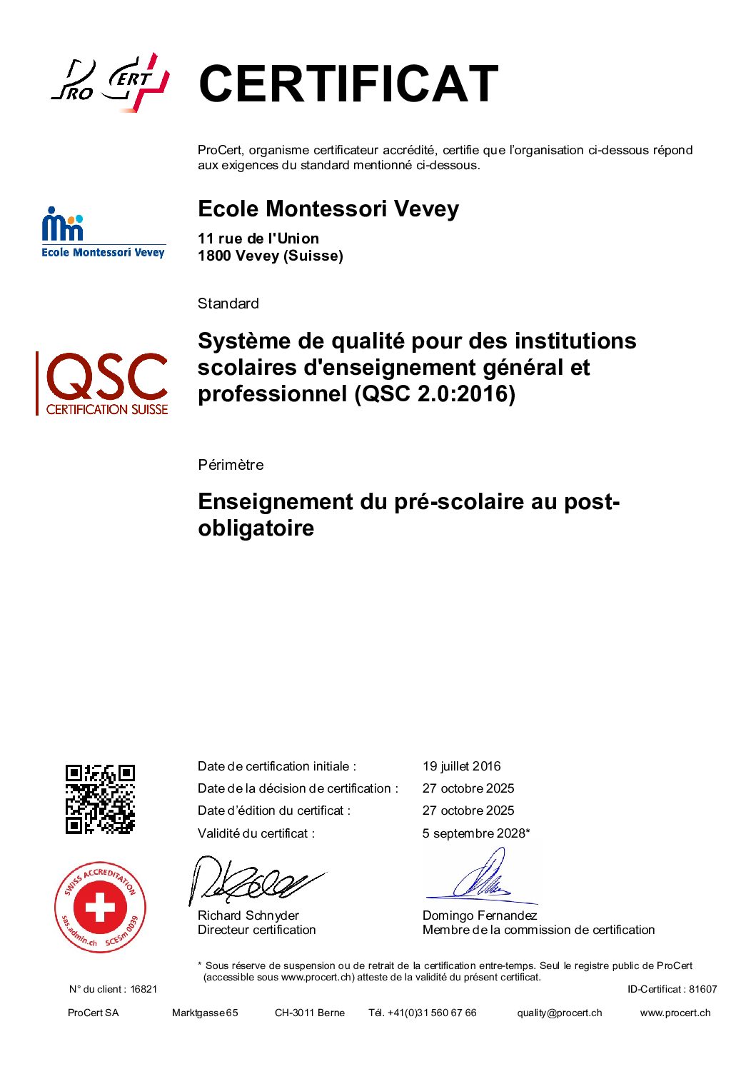 Administration, pédagogie, enseignement, qualité des enseignants, adéquation du matériel pédagogique et des locaux sont les principaux points de cet audit de certification, effectué sur place et comprenant un temps d’observation dans nos classes.
